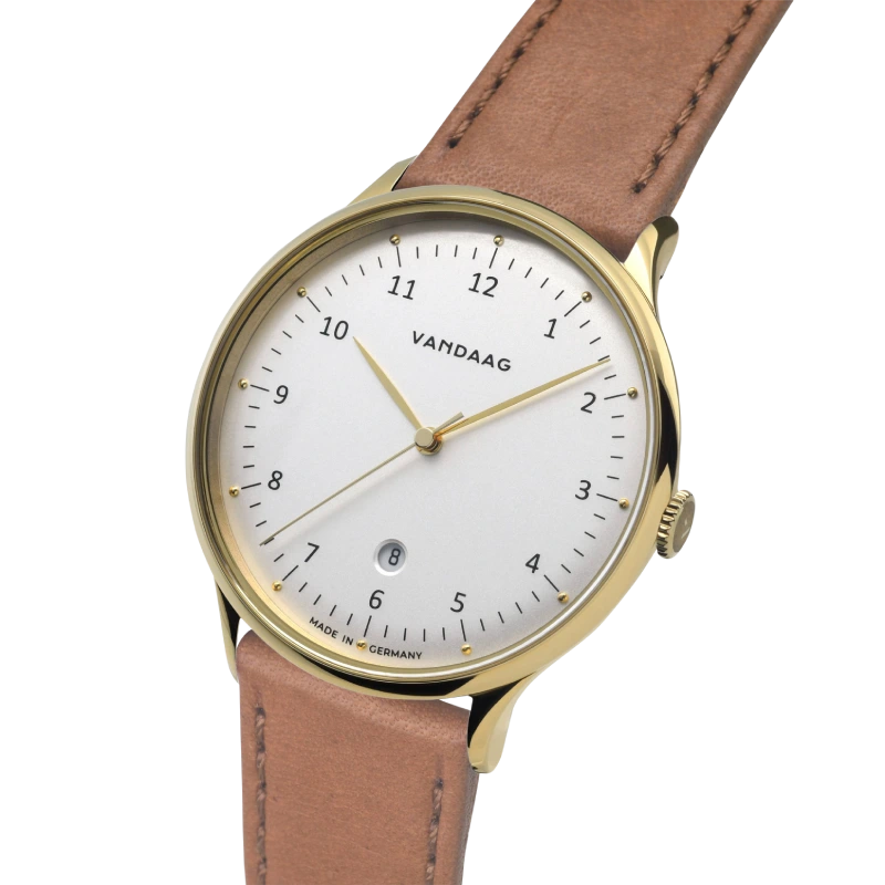 Mit ihrem Retro-Look, dem 40mm Edelstahlgehäuse, dem soften Lederband, dem fein gewölbten silber-weißen Zifferblatt und den klaren arabischen Zahlen ist die Primus eine Uhren-Schönheit ohne Alter.