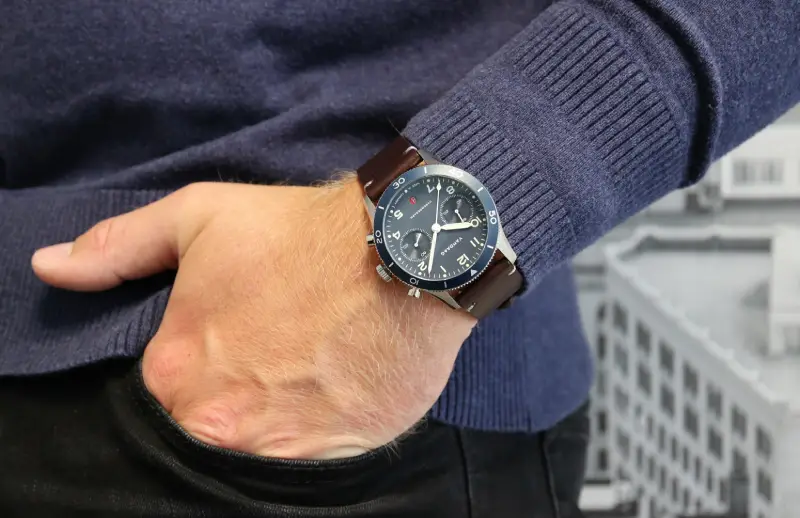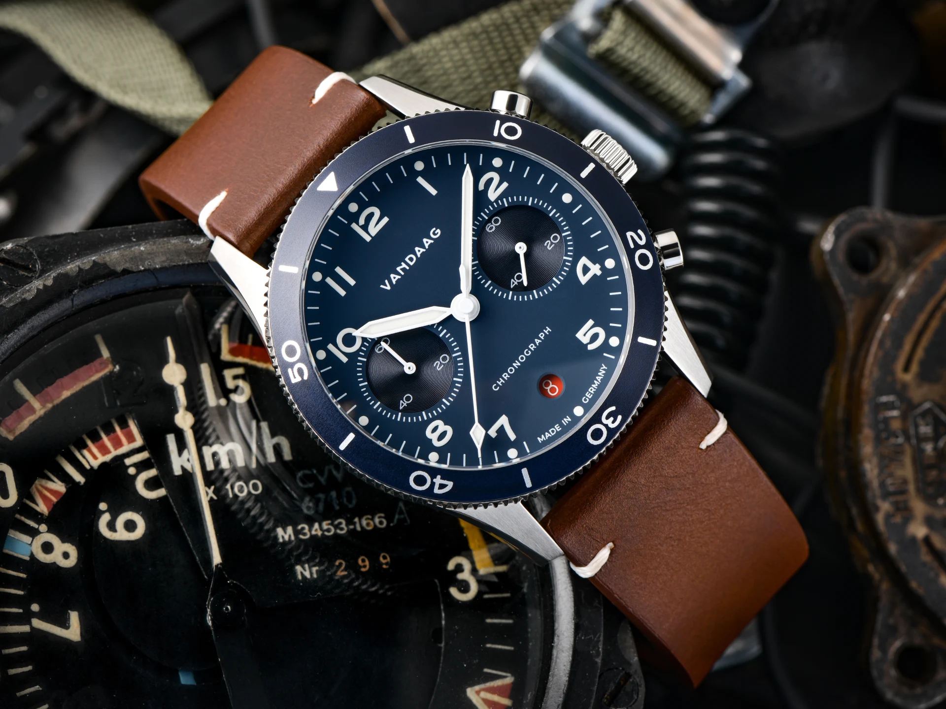 Herrenuhr Chronograph in blau im Stil einer Pilotenuhr