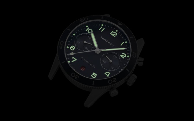 Das Zifferblatt der Schallmauer ist absolut matt und zeichnet sich durch seine klaren Ziffern sowie der zentralen Anordnung ihrer großen Totalisatoren aus wodurch eine optimale Ablesbarkeit erreicht wird. 12 Kugelindexe runden das Zifferblatt stilvoll ab. Mit dem kontrastierten roten Datum wird dem Blatt, dem Gesicht der Uhr, ein besonderer Charakter verliehen. Diesen markanten Eindruck betonen die geradlinigen, klaren Zeiger und sorgen für perfekte Orientierung – auch nachts. Denn die japanische NEMOTO-Veredelung garantiert enorme Nachleuchtkraft.