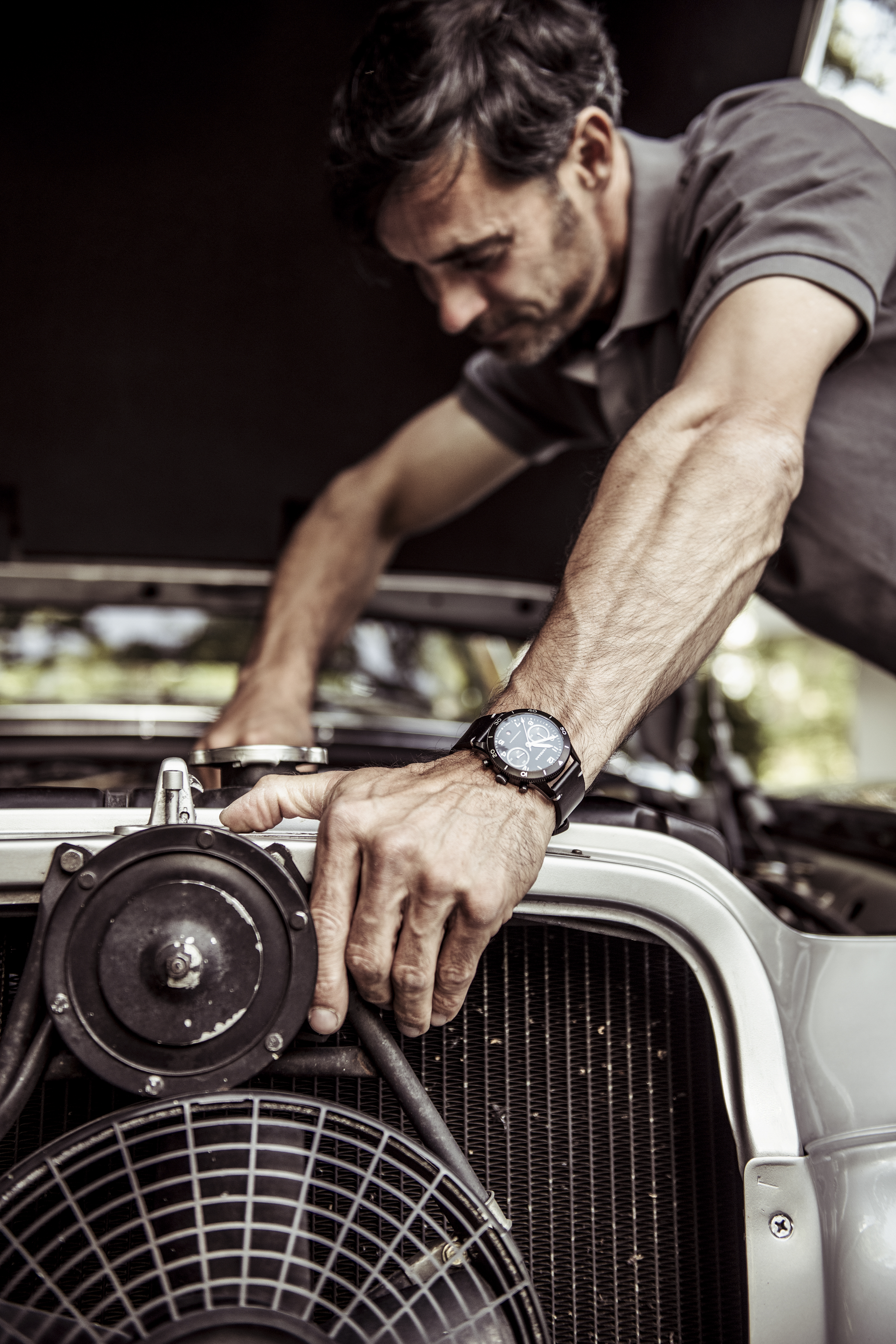 Mit ihrem 42.5mm-Gehäuse in Edelstahl, dem weichen, geölten Lederband und dem legendären schwarzen Chronographen Zifferblatt setzt die Schallmauer-Herrenuhr die spannende Geschichte der Luftfahrttradition nahtlos fort. Und schreibt sie auch neu.