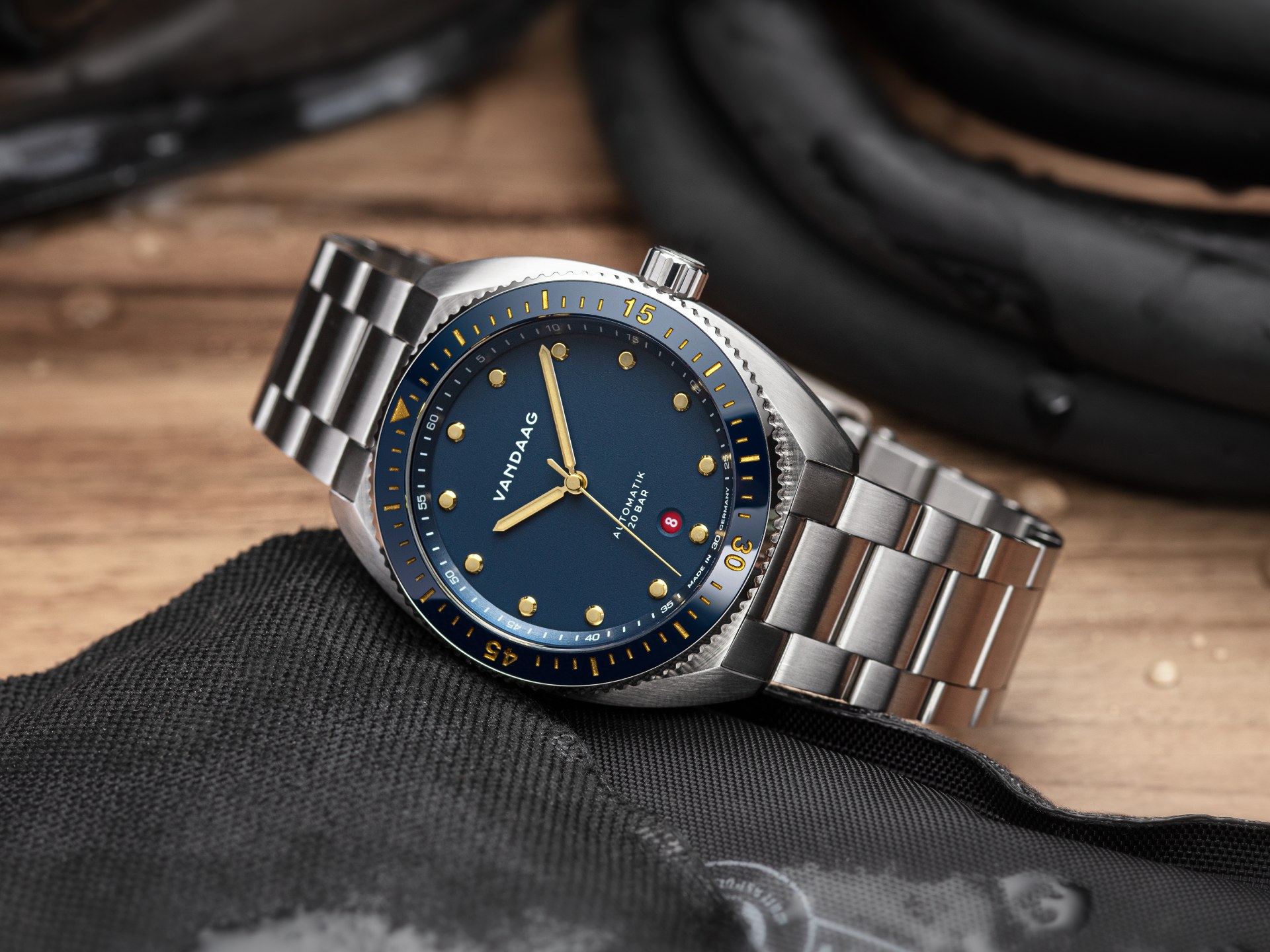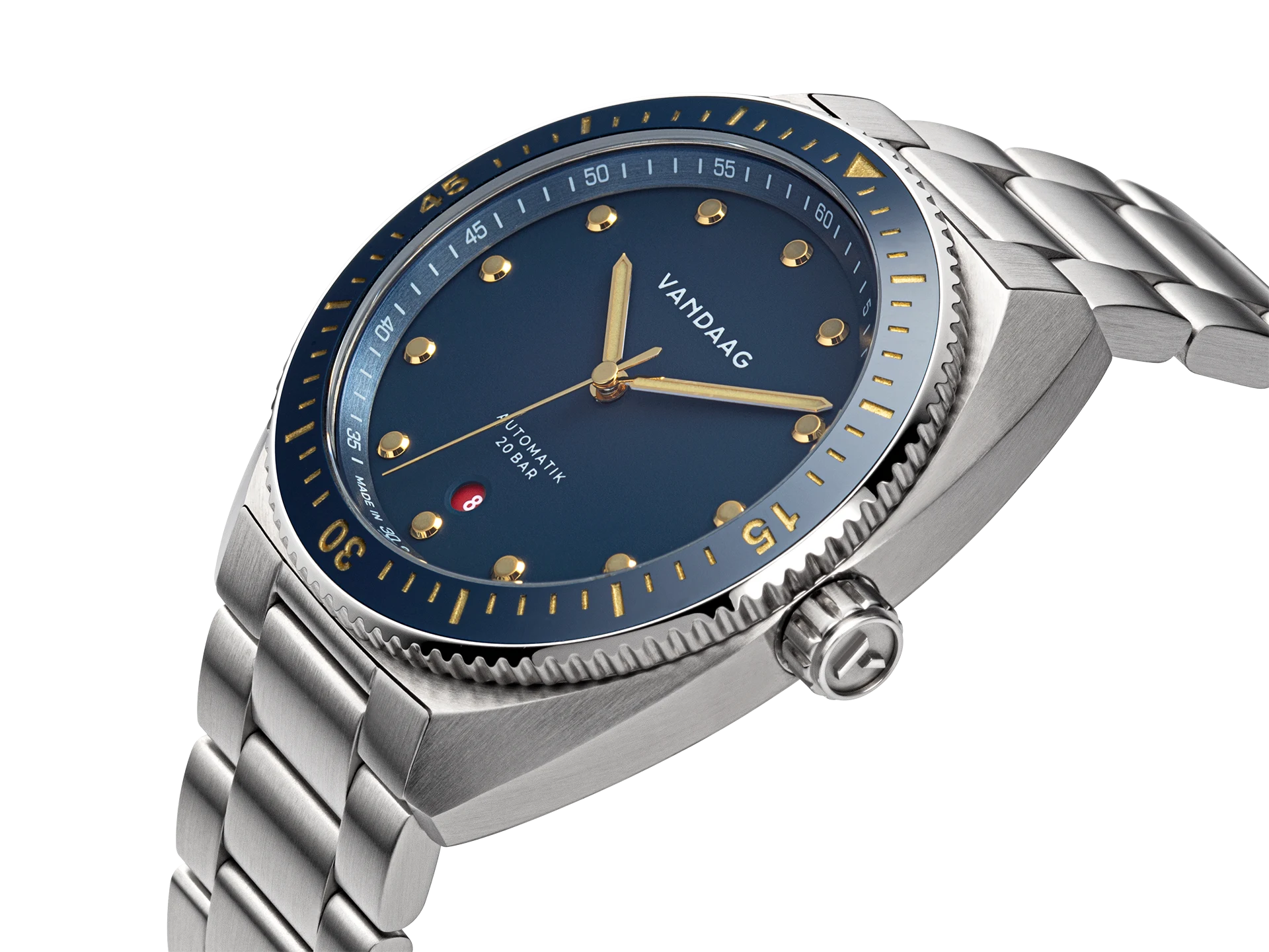 Das markante CNC bearbeitete 20BAR Retro-Gehäuse unterteilt die gebürsteten Oberflächen durch präzise gearbeitete Kanten. Die einseitig drehbare Taucherlünette mit 60-Minuten Graduierung ist in 120 Schritten fein gerastert wodurch sich Tauch- und Dekompressionszeiten präzise ablesen lassen. Die Keramikeinlage ist äußerst kratzfest und passt perfekt zum harten Saphirglas.